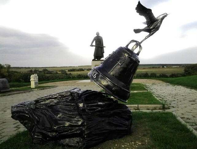 В основании твердь земная, как символ нерушимости и силы земли Русской. Неподъемный вечевой колокол сотрясает землю медными звуками, напоминая о павших воинах земли Лопасненской войска Дмитрия Донского в 1380 году. И этот гул Памяти, как и полет Чайки, оторвавшей колокол от земли, будет услышан и увиден благодарными потомками.